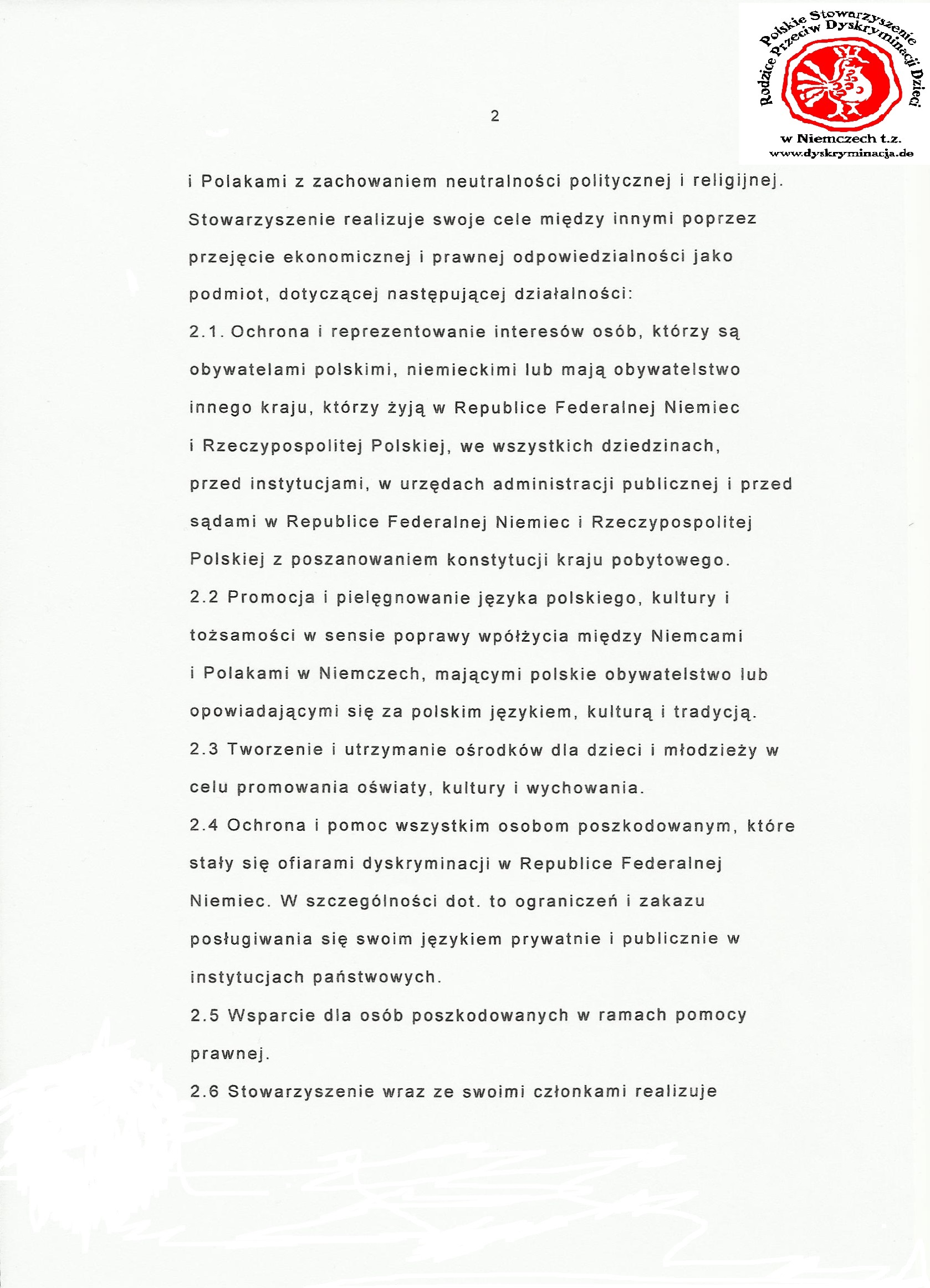 Statut: Polskie Stowarzyszenie Dyskryminacja.de str.2